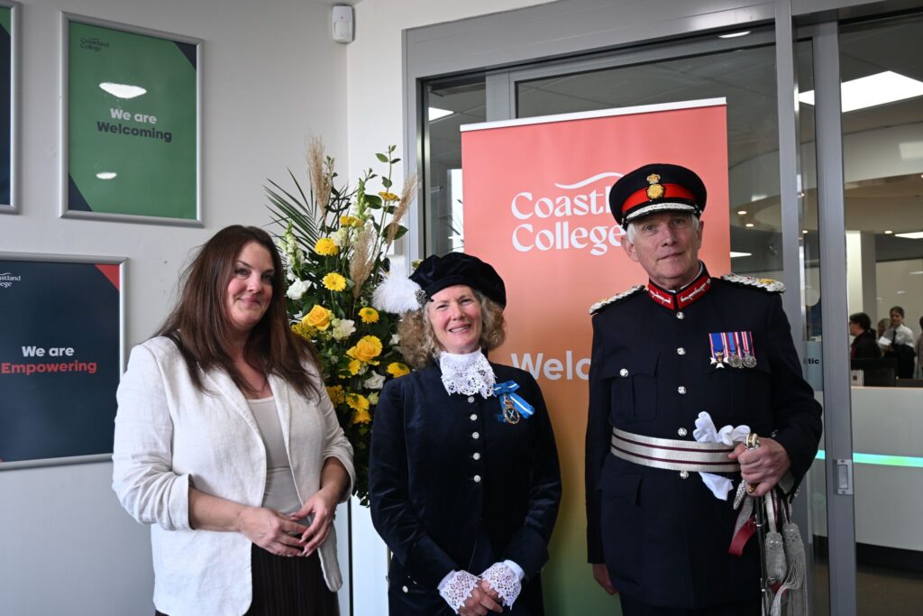 The new High Sheriff of Dorset, Dr Helena Conibear DL (centre), pictured with the CEO and Principal of Coastland College, Kate Wills, and the Lord Lieutenant of Dorset, Michael Dooley