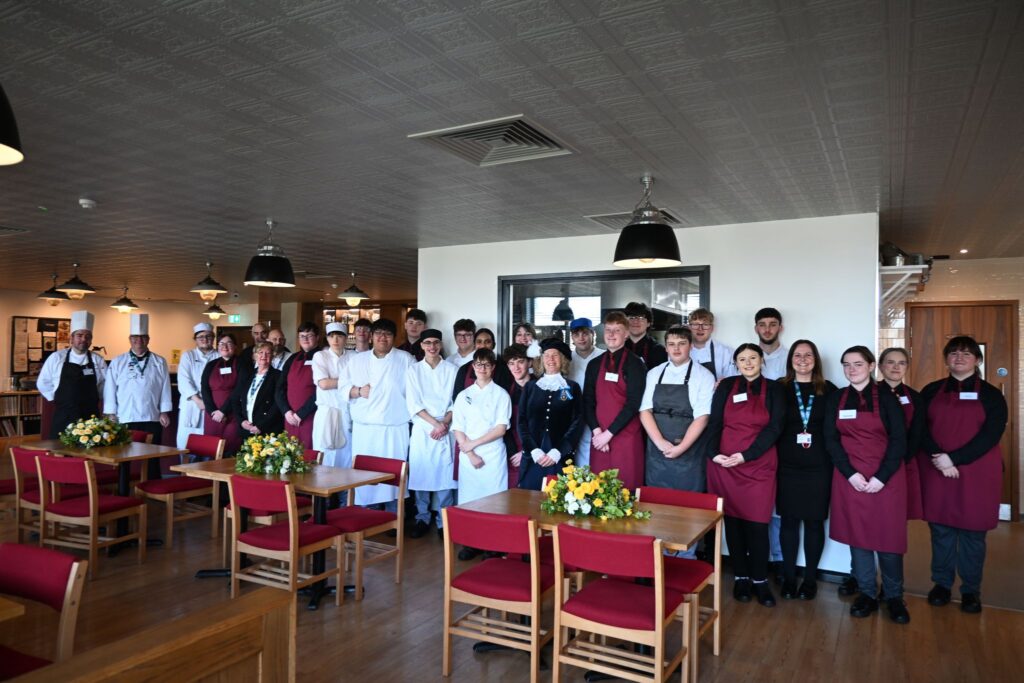 Catering and Hospitality students and staff at Coastland College’s Avenue Restaurant, pictured with the new High Sheriff after serving refreshments for almost 200 guests