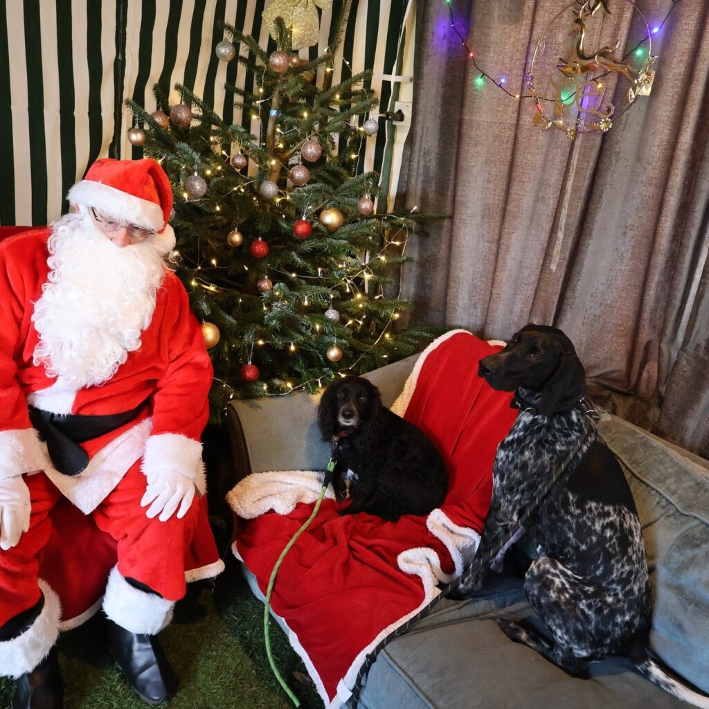 Four-legged friends meet Father Christmas in the Doggy Grotto at Kingston Maurward Animal Park & Gardens